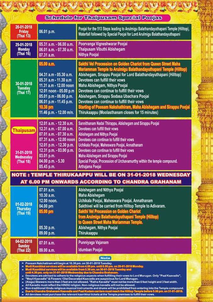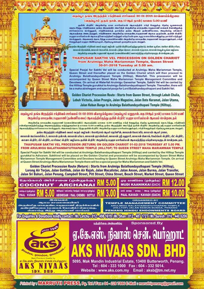 January 7, 2018 Vel EventsfacebookInfo StoryMurugaPenangTamilThaipusam