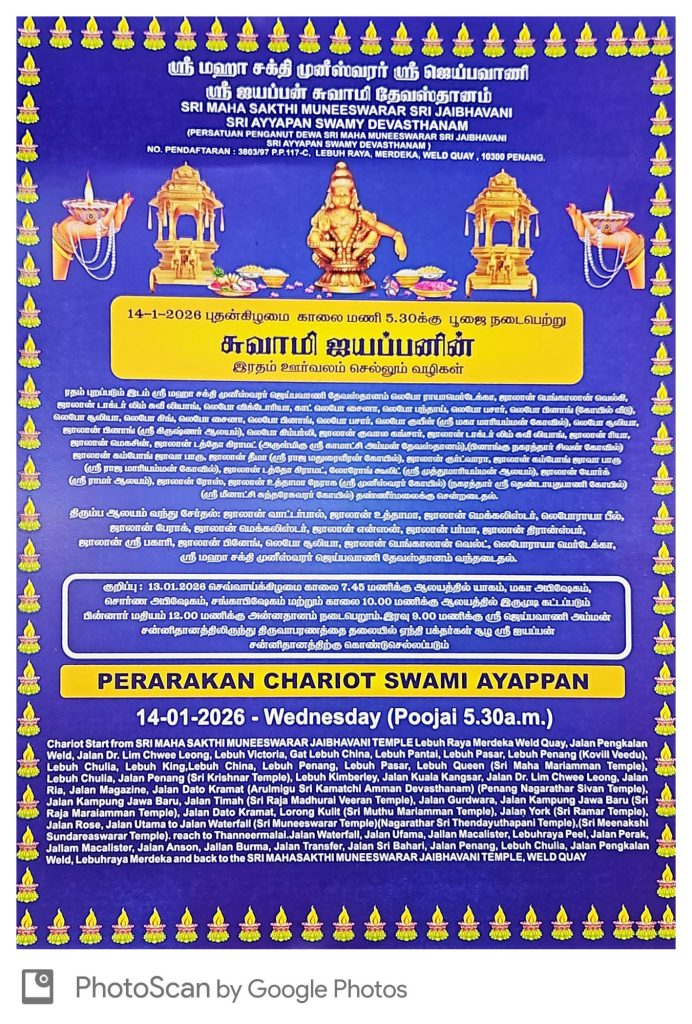 Sri Aiyappan Swamy Penang Chariot 2026
